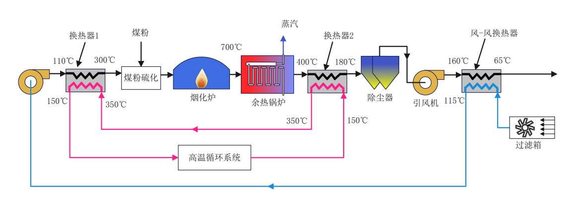 煙氣余熱深度回收:通過高效換熱器將90-150℃煙氣降溫至露點以下,回收的熱量用于加熱工藝用水或空氣。
