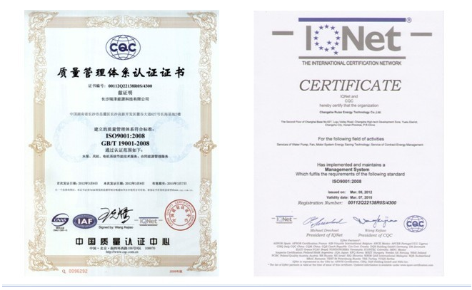 近日,我公司順利通過了中國質量認證中心ISO9001和IQNet雙證認證,并取得了相關證書。